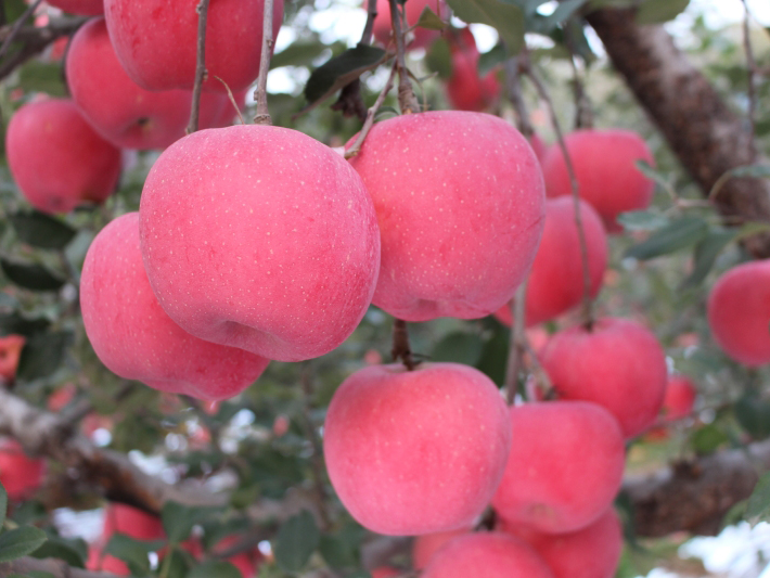 10月中旬成熟,全紅高標(biāo)語,煙富6中選出,大果型,單果重255-450克,果實(shí)長圓形,易著色,著濃紅色,全紅果比例98%,果面光潔,果肉濃黃色,致密硬脆,汁多,味甜,含糖量16%,短枝性狀穩(wěn)定,樹冠較緊湊,品質(zhì)優(yōu)良、可建大型基地。