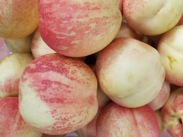 9月上旬成熟,慢溶質(zhì),果肉細(xì)脆,有蜂蜜的口感,果面白里透紅,紅條紋平頂,含糖量18-20%,果重200-300克,豐產(chǎn)。
