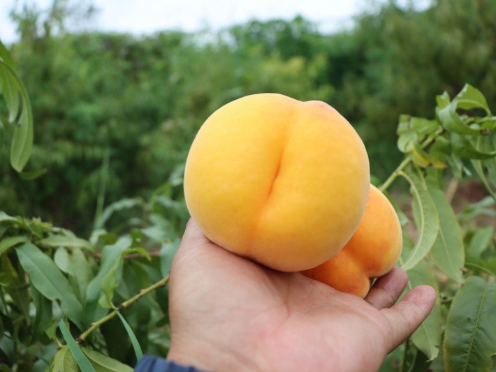 8月下旬成熟,果形端正美觀,單果重270-450克,黃肉粘核,硬溶質(zhì),含糖量19%,純甜,品質(zhì)極優(yōu),套袋果面金黃色,自花授粉,極豐產(chǎn)。