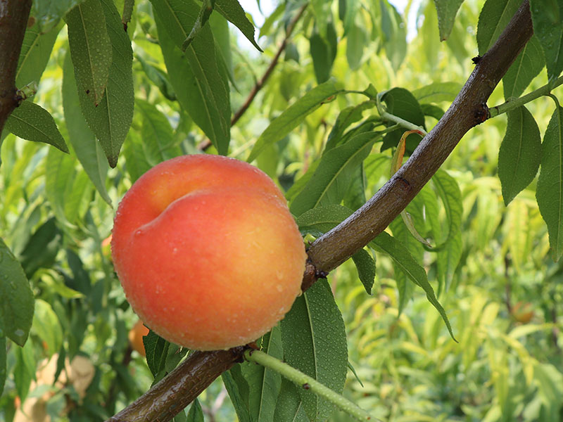 6月上中旬成熟,果重270克-380克,含糖量14-16%,硬溶質(zhì),果實(shí)套袋純黃色,不套袋紅色,果肉黃色,自花授粉,極豐產(chǎn)。
