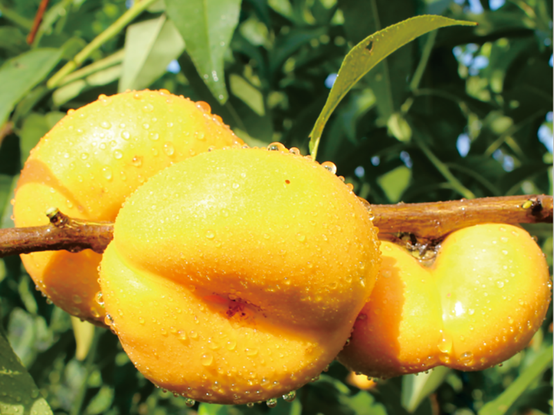 7月上旬成熟,果實(shí)扁平型,單果重150克,風(fēng)味香甜,硬質(zhì),黃皮黃肉,含糖量18-22%,自花結(jié)實(shí),極豐產(chǎn)。