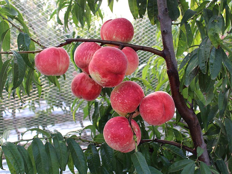 9月25日成熟,果形平頂,桃中著色條紅的品種,含糖量20%,貨架期40天,單果重400克,大果800克以上,自花結(jié)實,畝產(chǎn)6000千克以上。