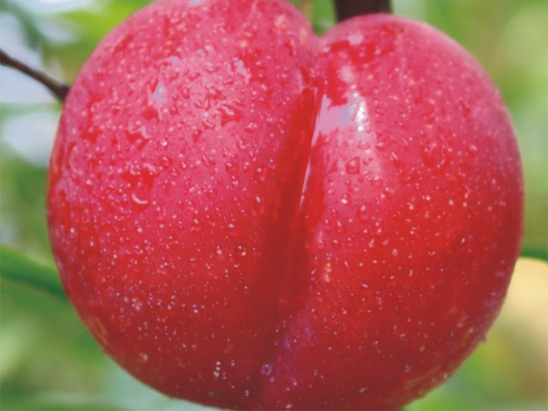 8月20號成熟,李基因75%,桃基因25%,離核,果面鮮紅色,果重150克-200克,果面沒果粉,像油桃一樣,含糖量18%,硬質(zhì),花粉多,冷庫可儲藏一個月以上。