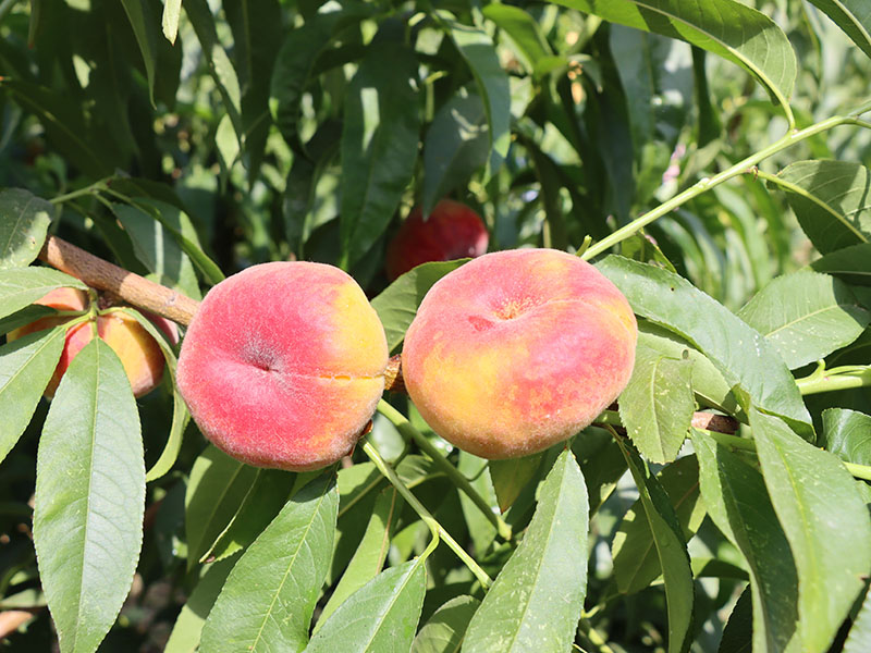 極早熟黃肉蟠桃新品種,5月底或6月初成熟,果實(shí)發(fā)育期約60天,果實(shí)扁平型,果頂未見裂口,果皮黃色,成熟后可著部分條紅,單果重110-160克,風(fēng)味濃甜,有香氣,品質(zhì)優(yōu),含糖量14-16%,慢溶質(zhì),留樹時(shí)間長(zhǎng)慢,粘核,有花粉,豐產(chǎn)。